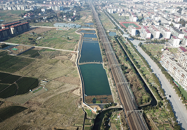 生态治水 牢筑生态本底,利用旧有坑塘打造生态湿地,打造多样性生态湿地,发挥湿地调蓄径流、水质净化、防洪减灾能力,通过岸线湿地的空间管制及湿地修复工程布局,对龙须沟沿线水质进行梯级处理提升,形成生态屏障。